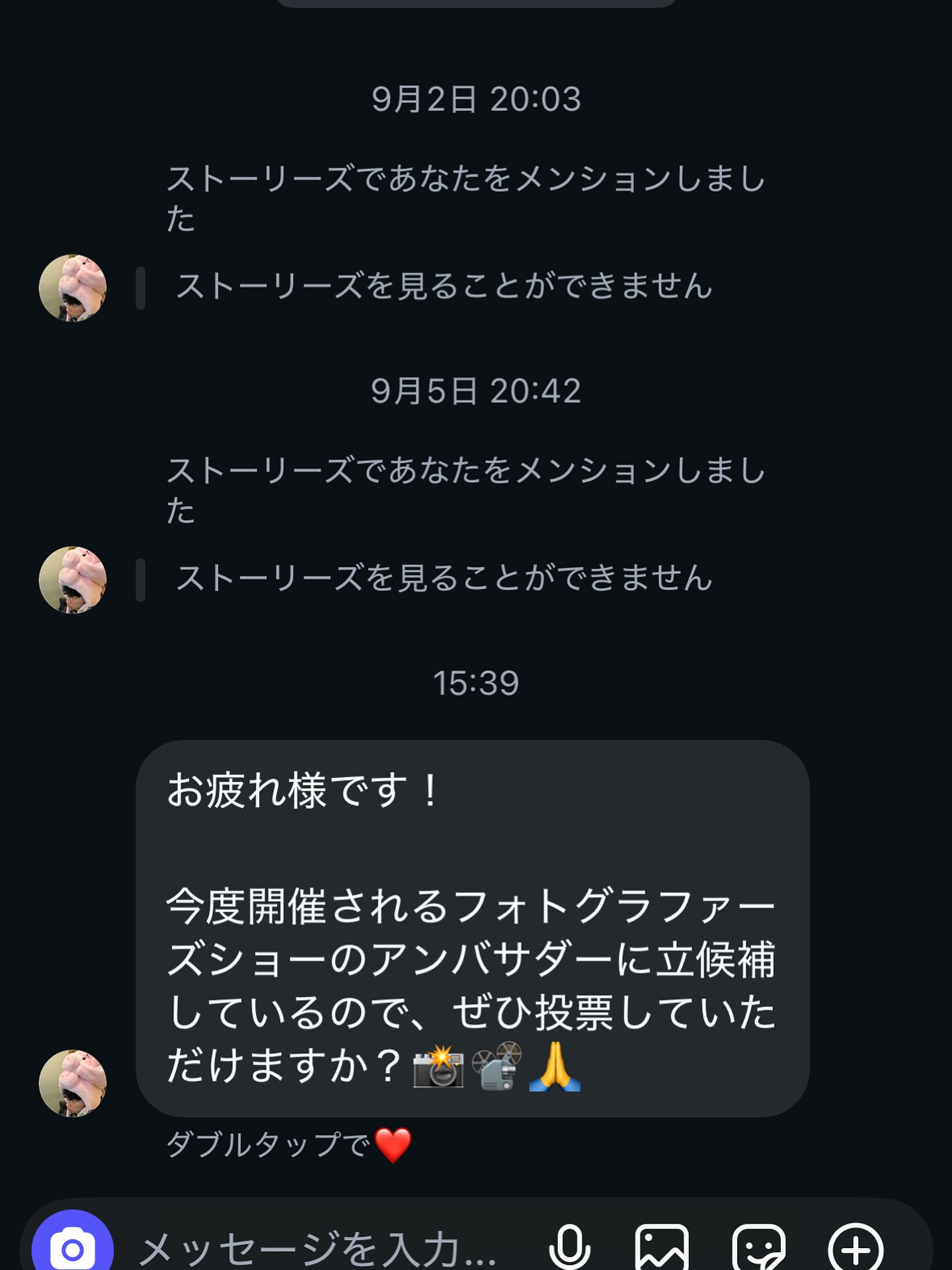 うちのスタッフのタケルが最近流行りのインスタ乗っ取りの被害に遭いまして、お店のインスタに早速DMが来てました