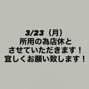 InstaBlog2026年3月20日店休のお知らせになります!
