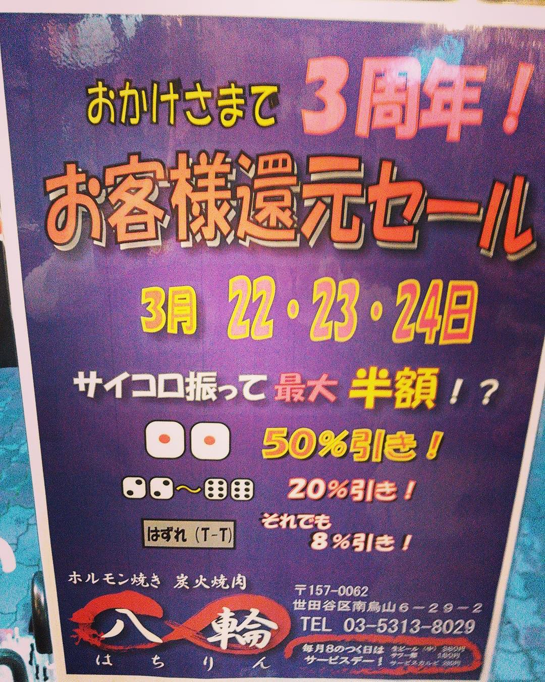 おかげさまで3周年を迎えることができました!実際は3/7がオープン日でしたが、本日から3日間!
