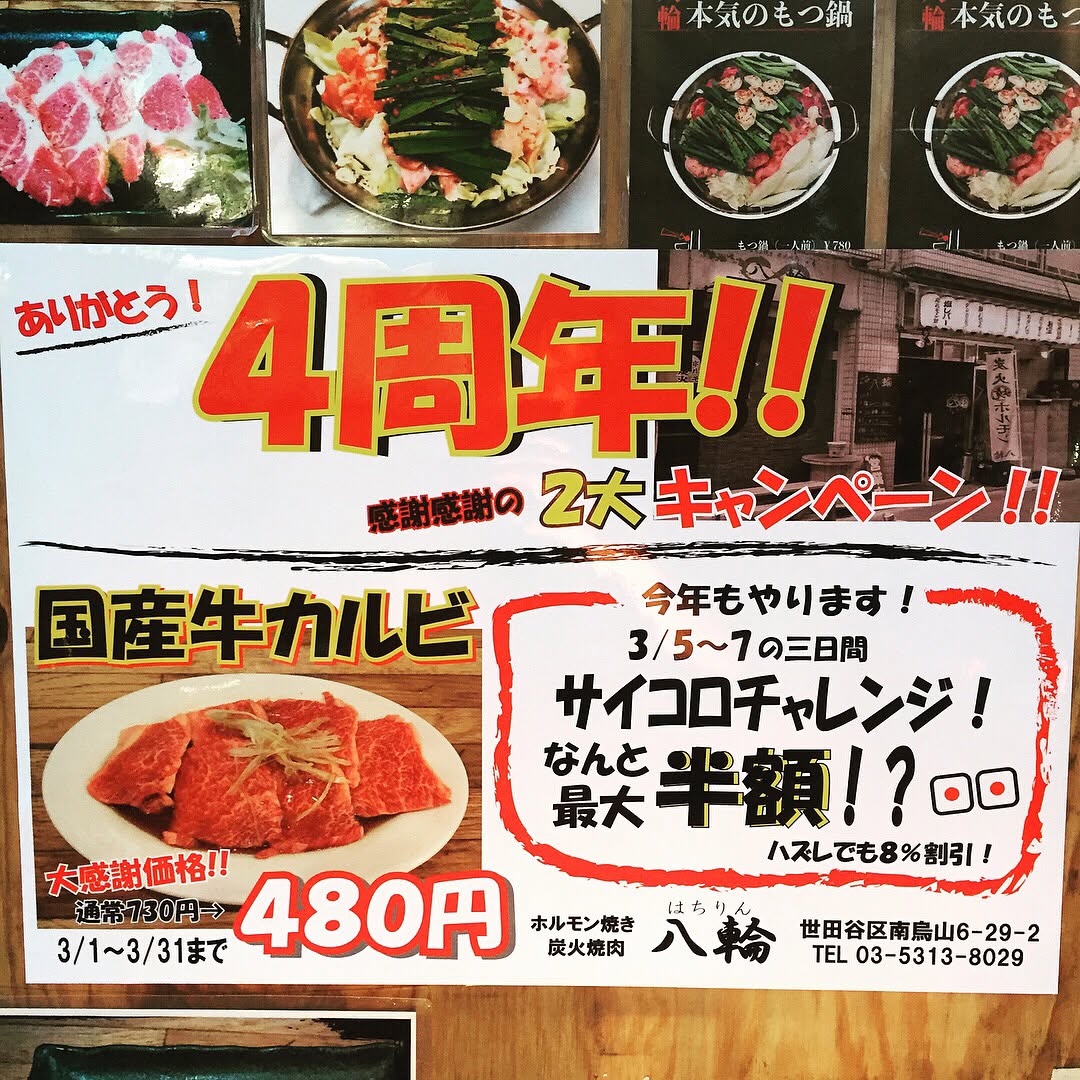 #八輪 #千歳烏山 #ちとから #チトカラ #ちょこっとおつまみ #バイト #アルバイト #スタッフ #バイト募集 #アルバイト募集 #スタッフ募集 #4周年 #国産牛 #カルビ #豚ホルモン #新鮮 #キャベツスープ #モツ鍋 #肉 #肉活 #肉好き #肉肉肉 #もつ鍋