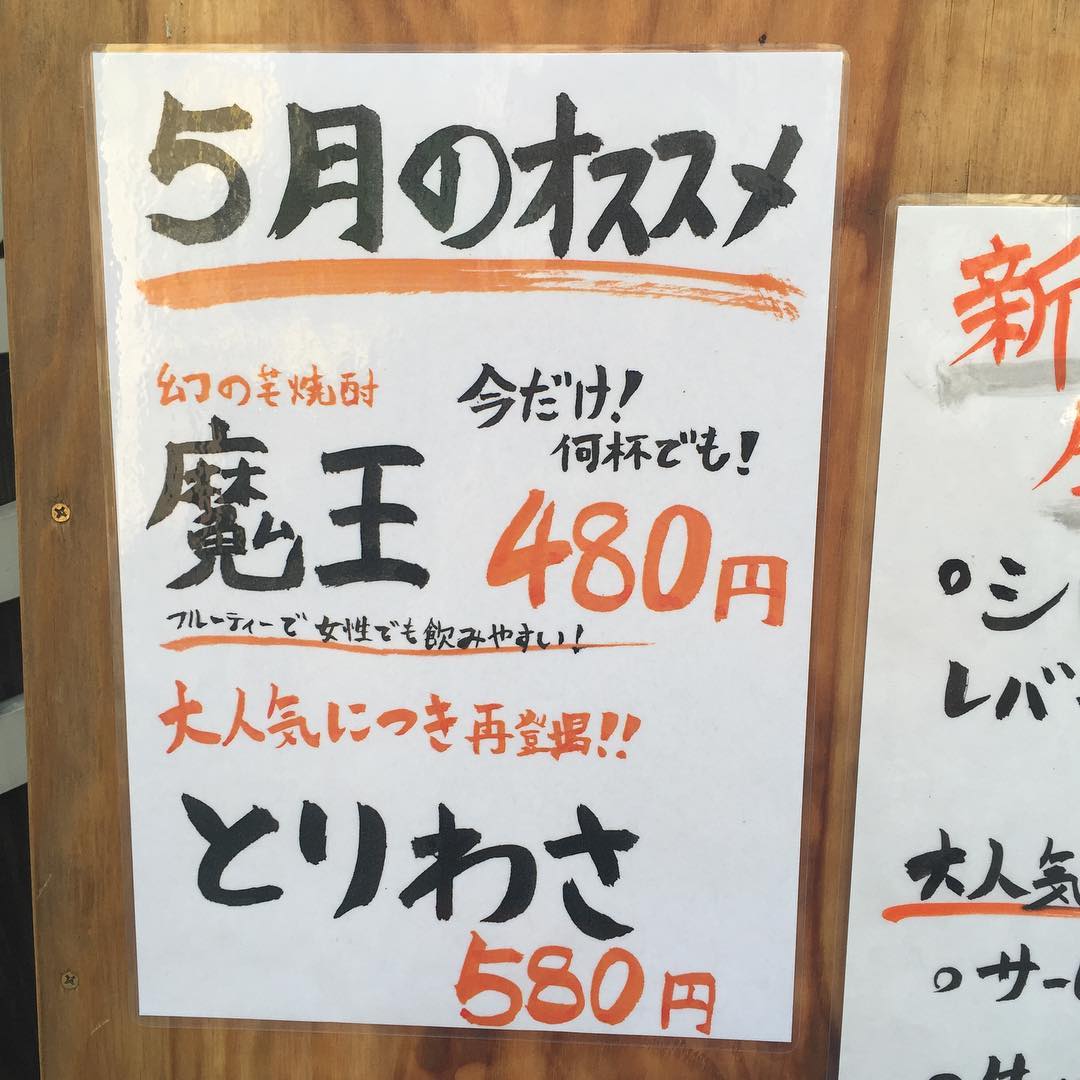 とりわさ 580円 、、、魔王480円はおかしいわ🤷♀️