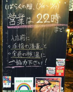 現在、時短要請に従い22:00までの営業ですが今月も元気いっぱい営業します!