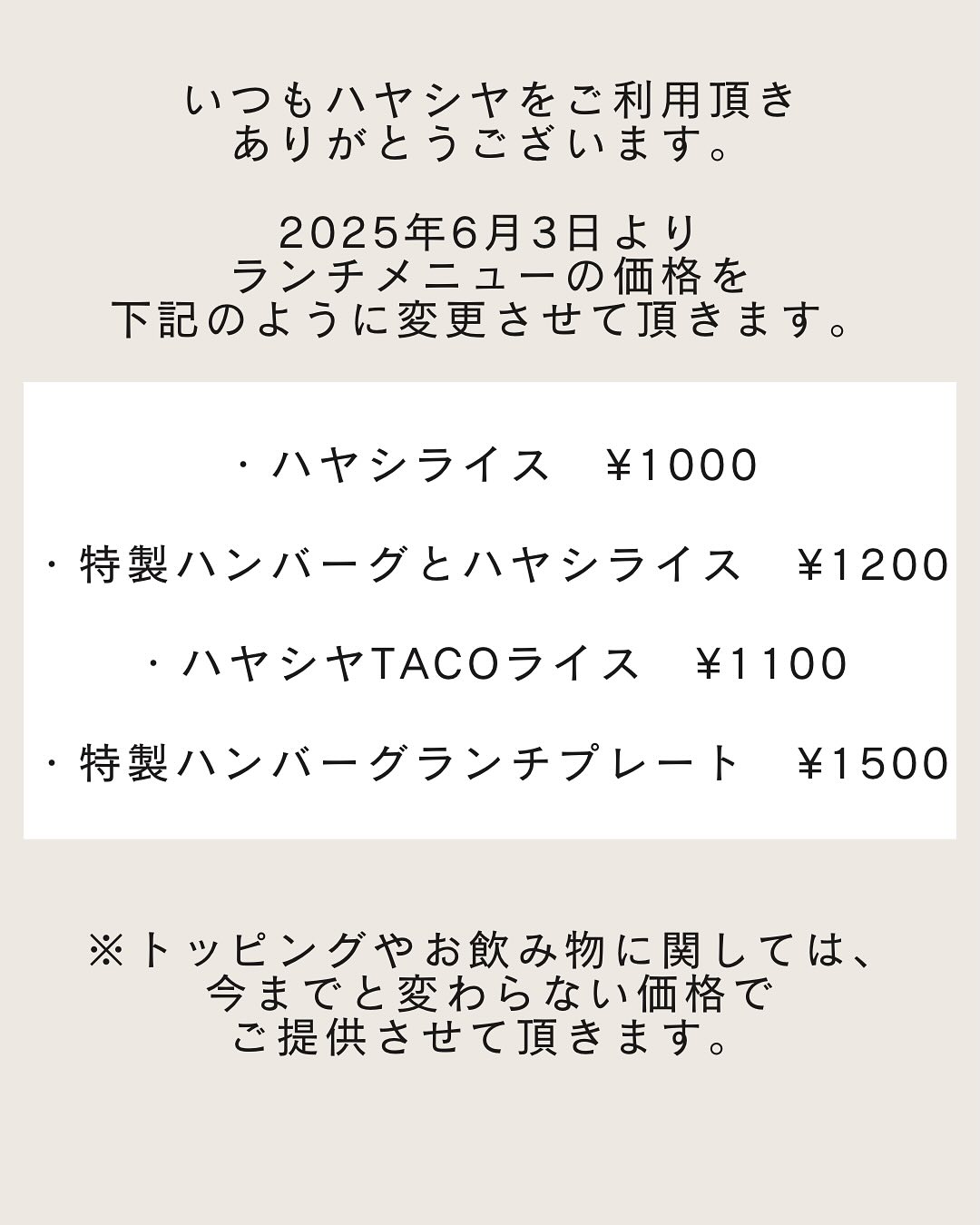いつもハヤシヤをご利用頂きありがとうございます。
