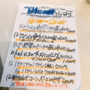 * ※緊急事態宣言が解除されましたが、当店では5月末日までテイクアウトメイン・20時までの短縮時間営業とさせていただきます。
