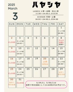 SNS https://www.instagram.com/hayashiya_kamikitazawa/