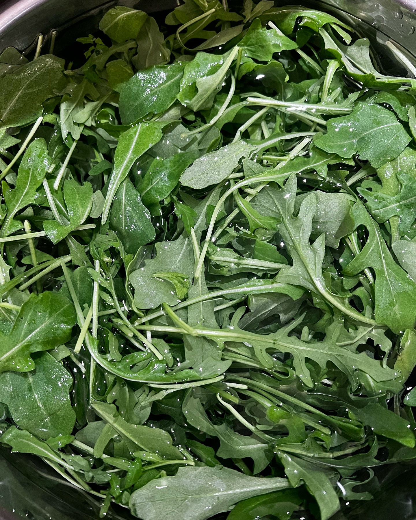 塩、ビネガー、オリーブオイルのあっさりドレッシングで