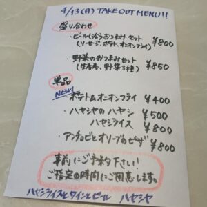 20時以降テイクアウトご希望の方はご相談ください!