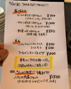 4/11(土)のテイクアウトメニュー🥡