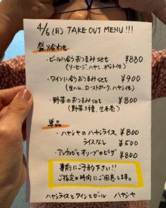 4/7(火)のテイクアウトメニュー🥡