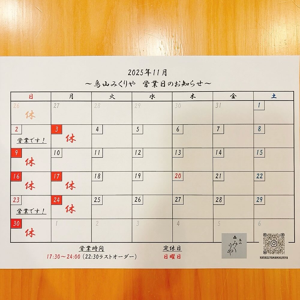 | インスタグラム | https://www.instagram.com/karasuyamamikuriya/ |