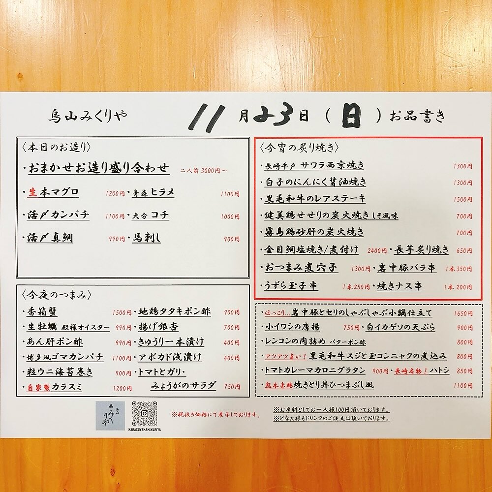 | インスタグラム | https://www.instagram.com/karasuyamamikuriya/ |