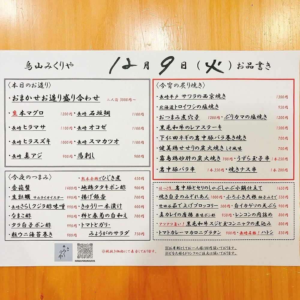 1品メニュー2025-12-26皆さまこんばんは!