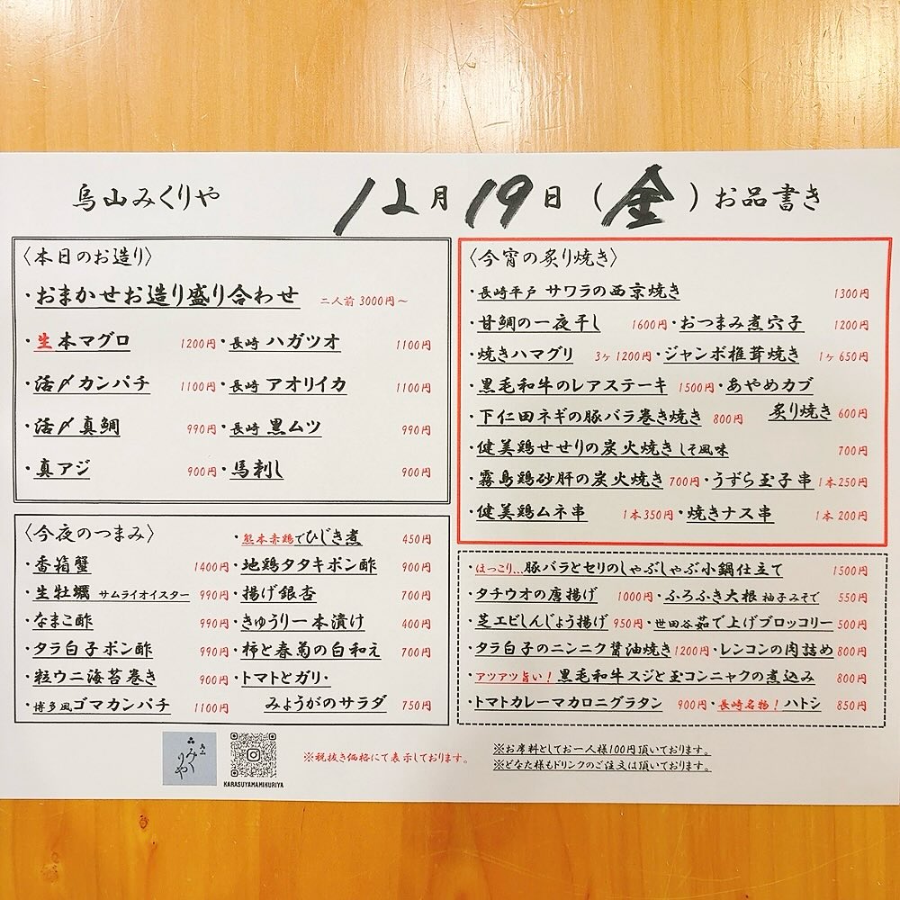1品メニュー2025-12-24皆さまメリークリスマス!