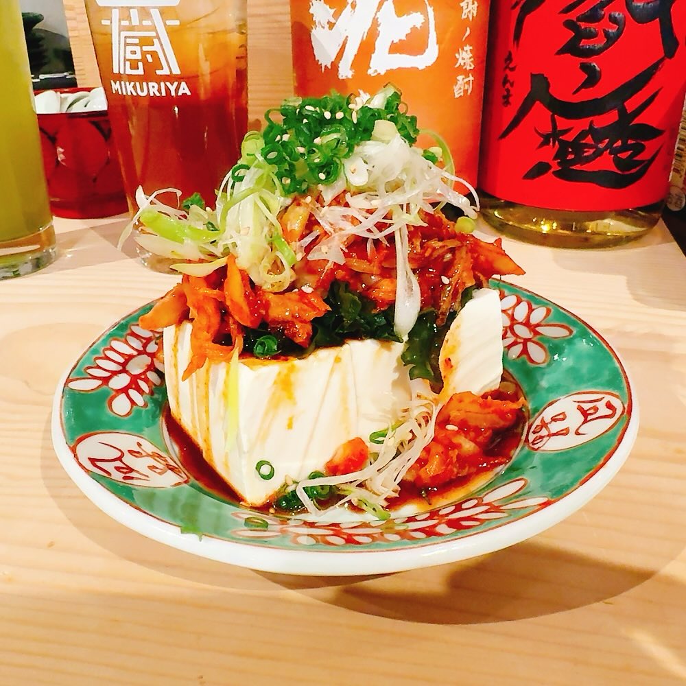 このキムチ冷奴に加えて薬味たっぷり!ジャコえび冷奴も!