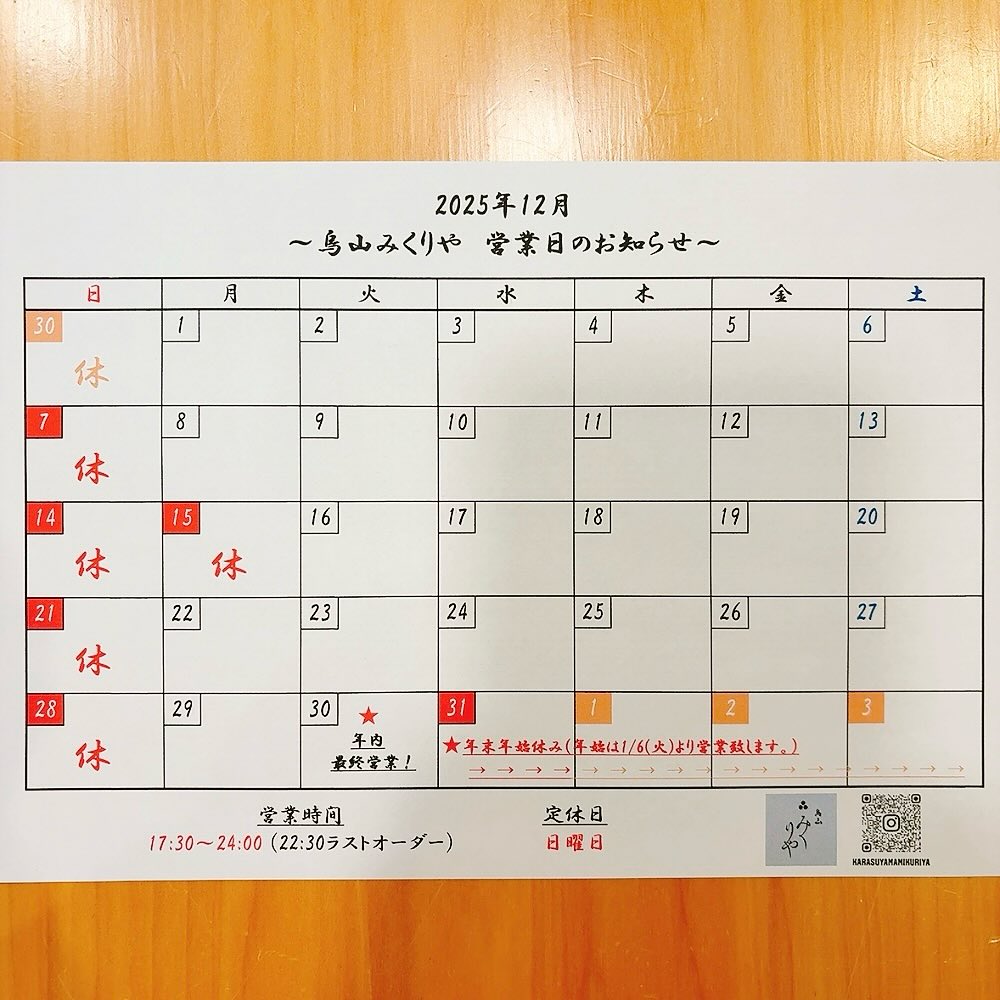 | インスタグラム | https://www.instagram.com/karasuyamamikuriya/ |
