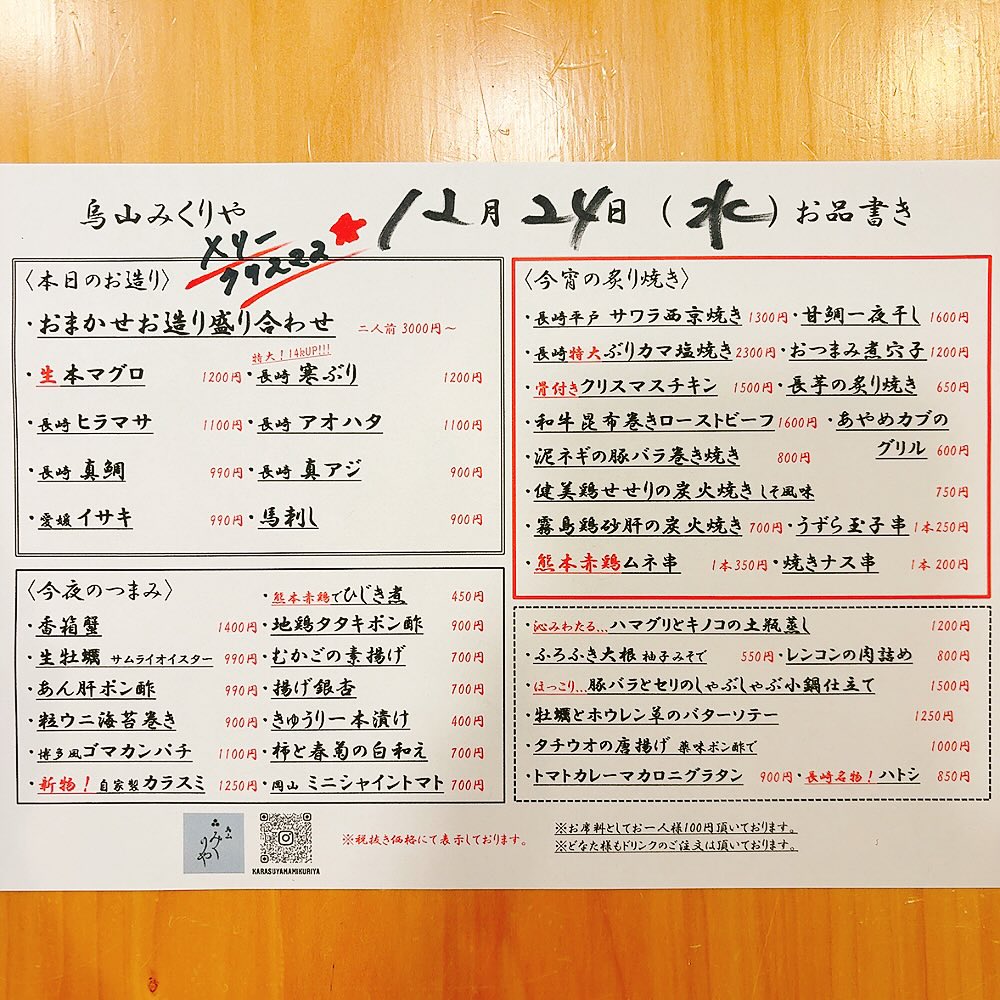#烏山みくりや #みくりや #長崎 #平戸 #アジフライの聖地 #世田谷そだち #千歳烏山 #駅近 #京王線グルメ #京王線 #和食 #居酒屋 #日本酒 #ワイン #ケンゾーエステート #kenzoestate #menu #クリスマスチキン #ローストビーフ #寒ぶり #自家製カラスミ #西京焼き #煮込み #炙り焼き #串焼き #平戸瀬戸市場 #世田谷ペイ使えます #ペイペイ使えます #スーパーコールド認定店 #年末年始カレンダー