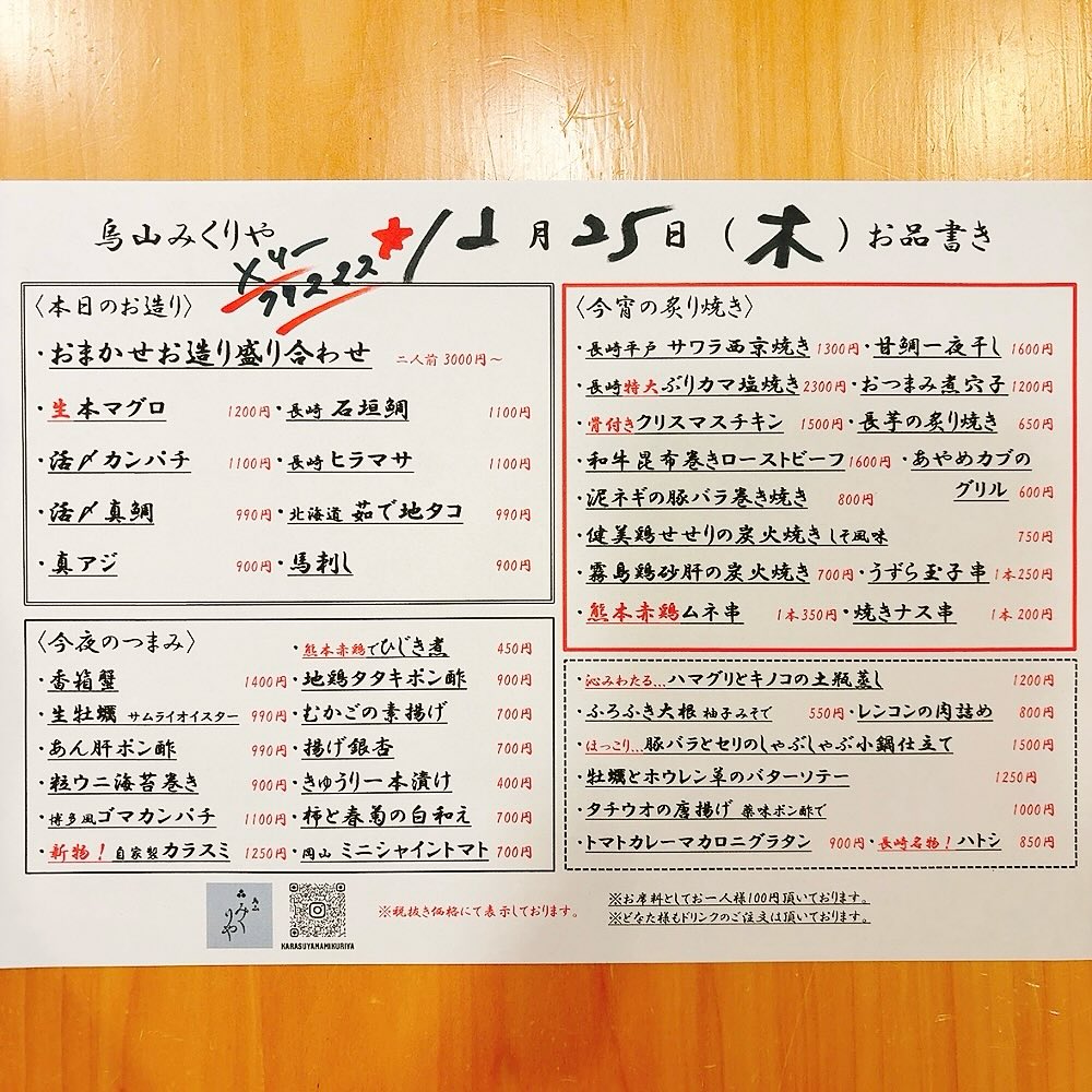 1品メニュー2025-12-24皆さまメリークリスマス!