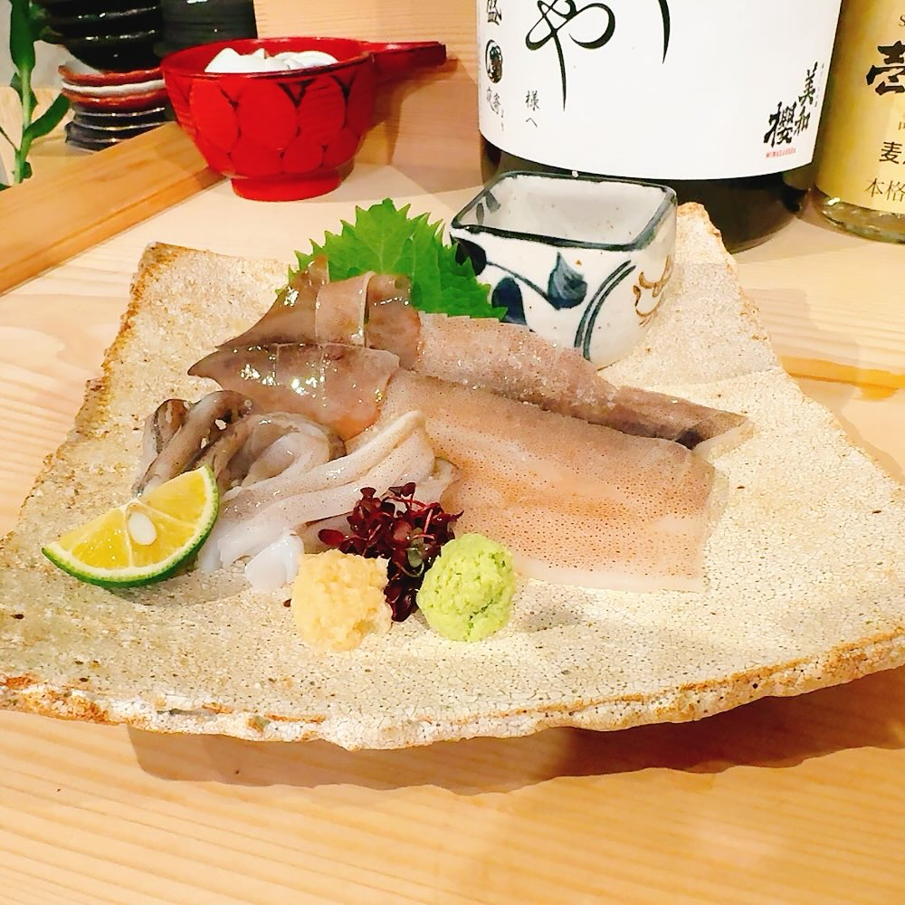 山形船上〆、スルメイカの姿造りもまた良し!