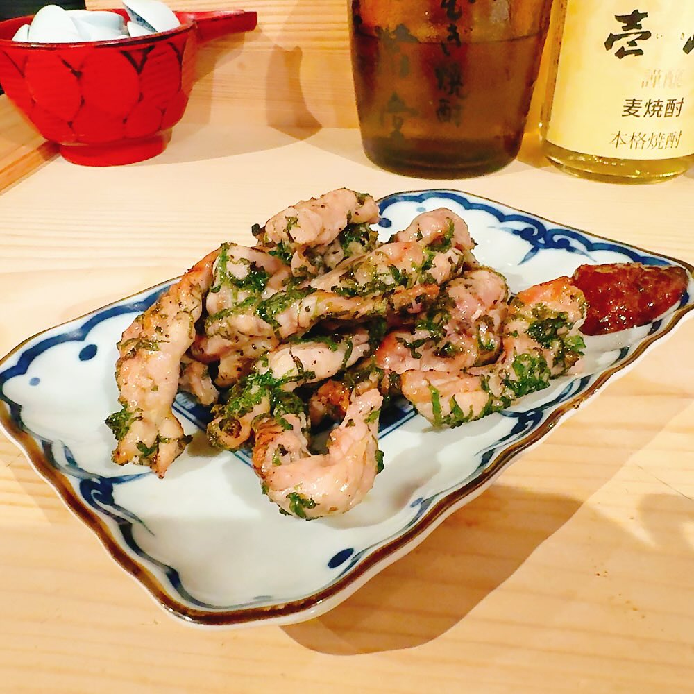 せせりの炙り焼きはお好みで梅肉とともに。