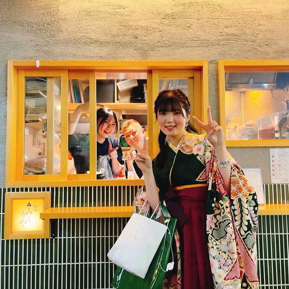 昨日は笹塚バイトスタッフ、みのりが卒業式後になんとも可愛い晴れ姿を見せに来てくれました!