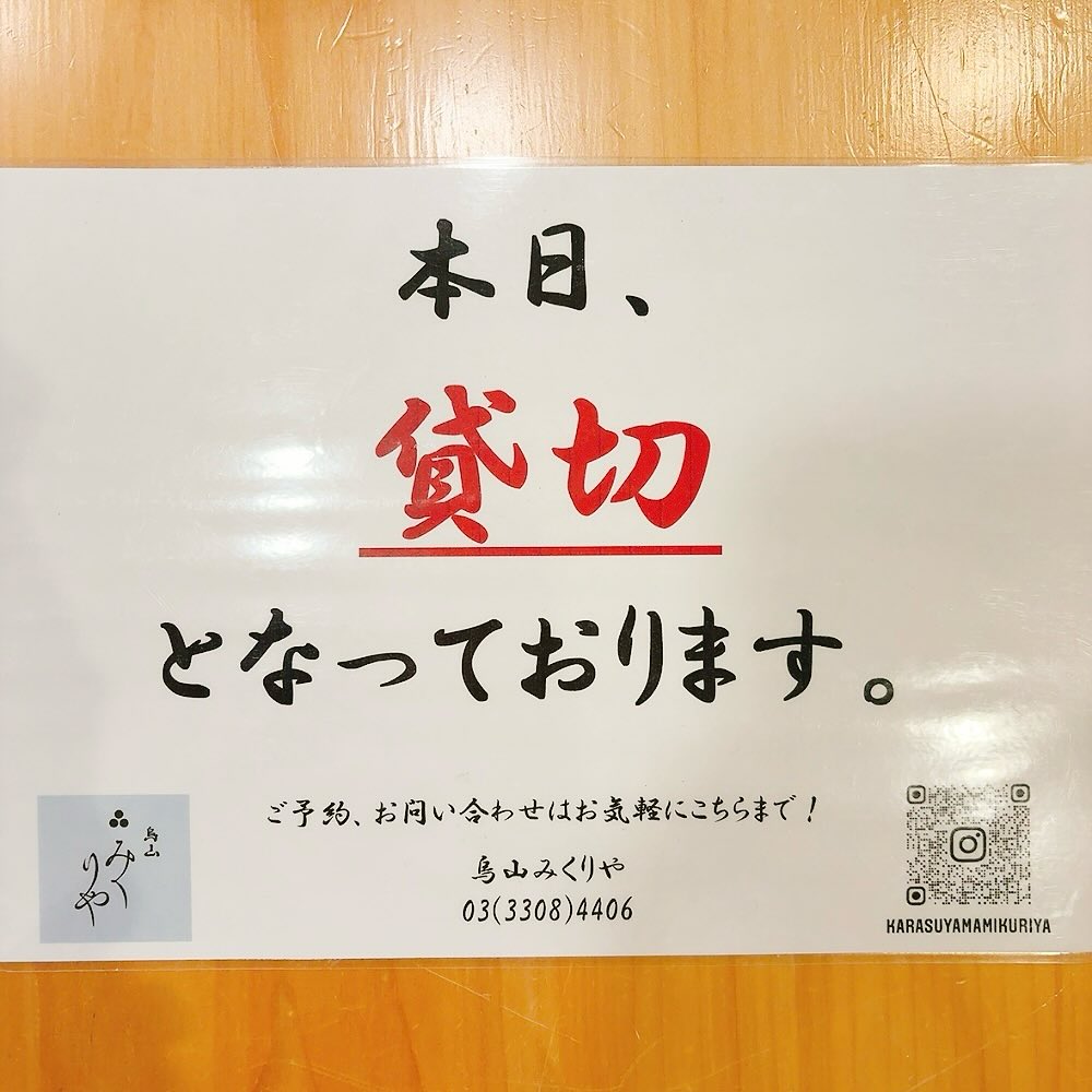 今宵の木曜みくりやは、終日貸切でのご案内となっております!