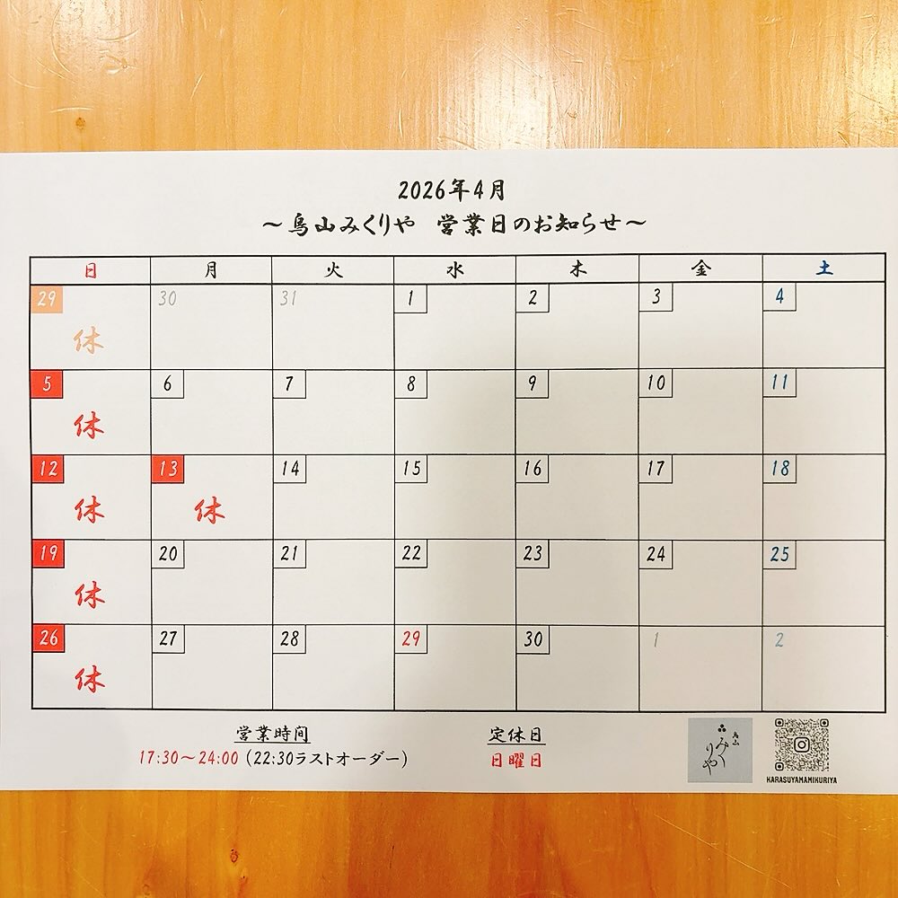 | インスタグラム | https://www.instagram.com/karasuyamamikuriya/ |
