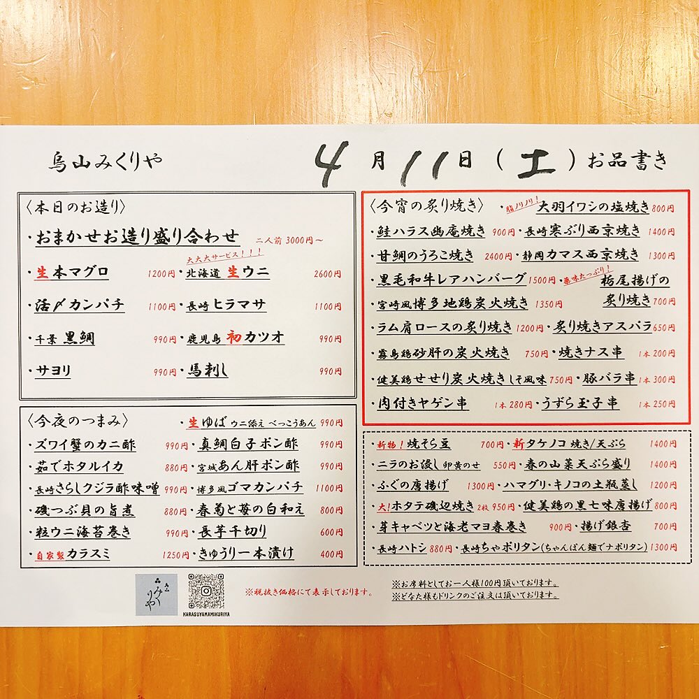 生ウニ、スルメイカの姿造り、今夜のお造りたちもいろいろと!