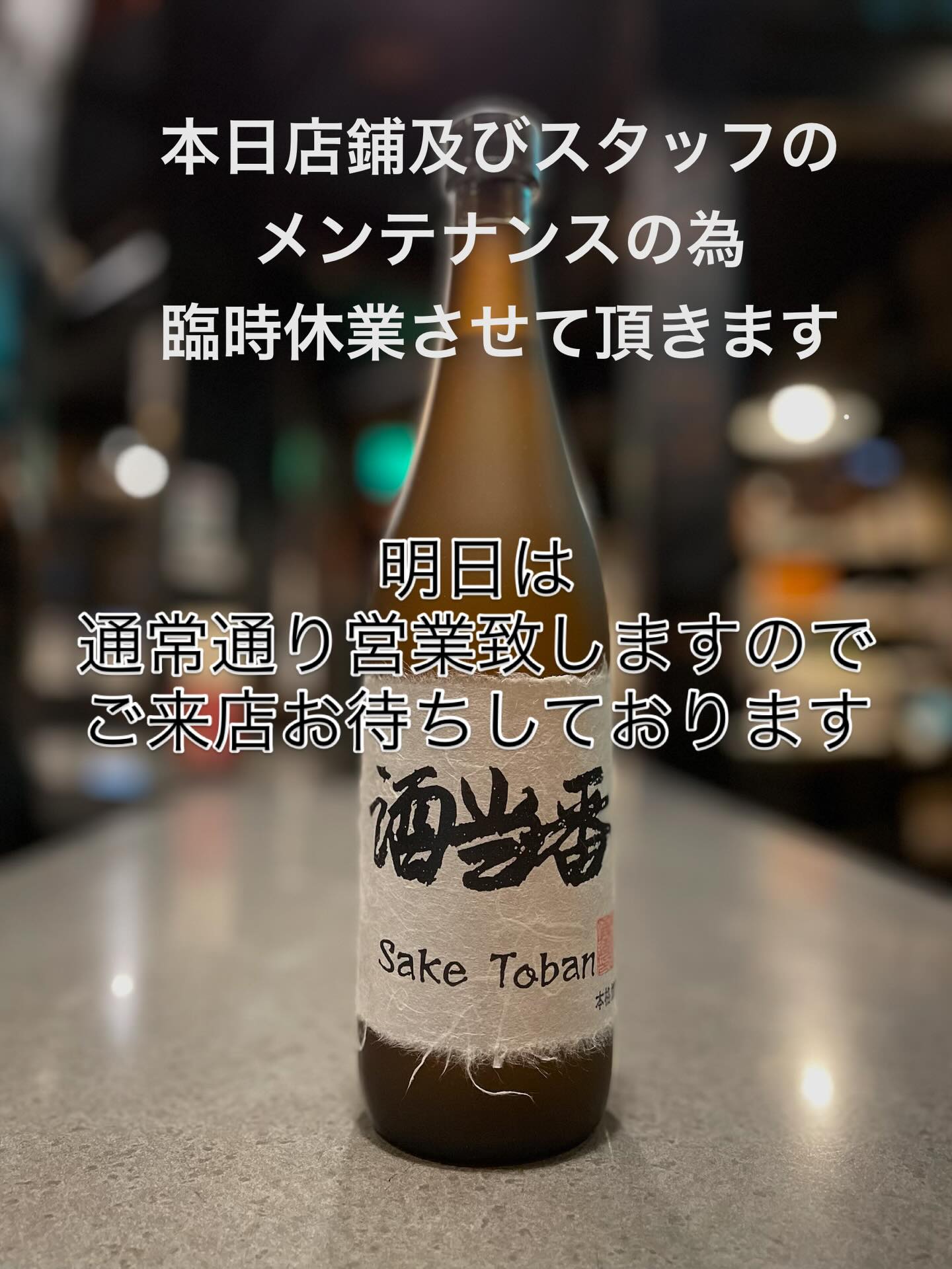 本日 臨時休業させて頂きます。 明日からは通常通りです。