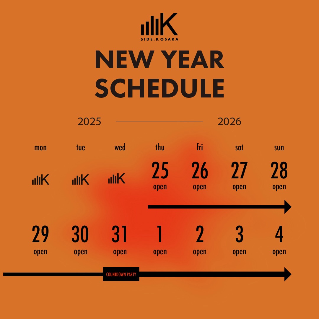 SIDE:K OSAKA는 연말연시 휴무 없이 정상 영업합니다!