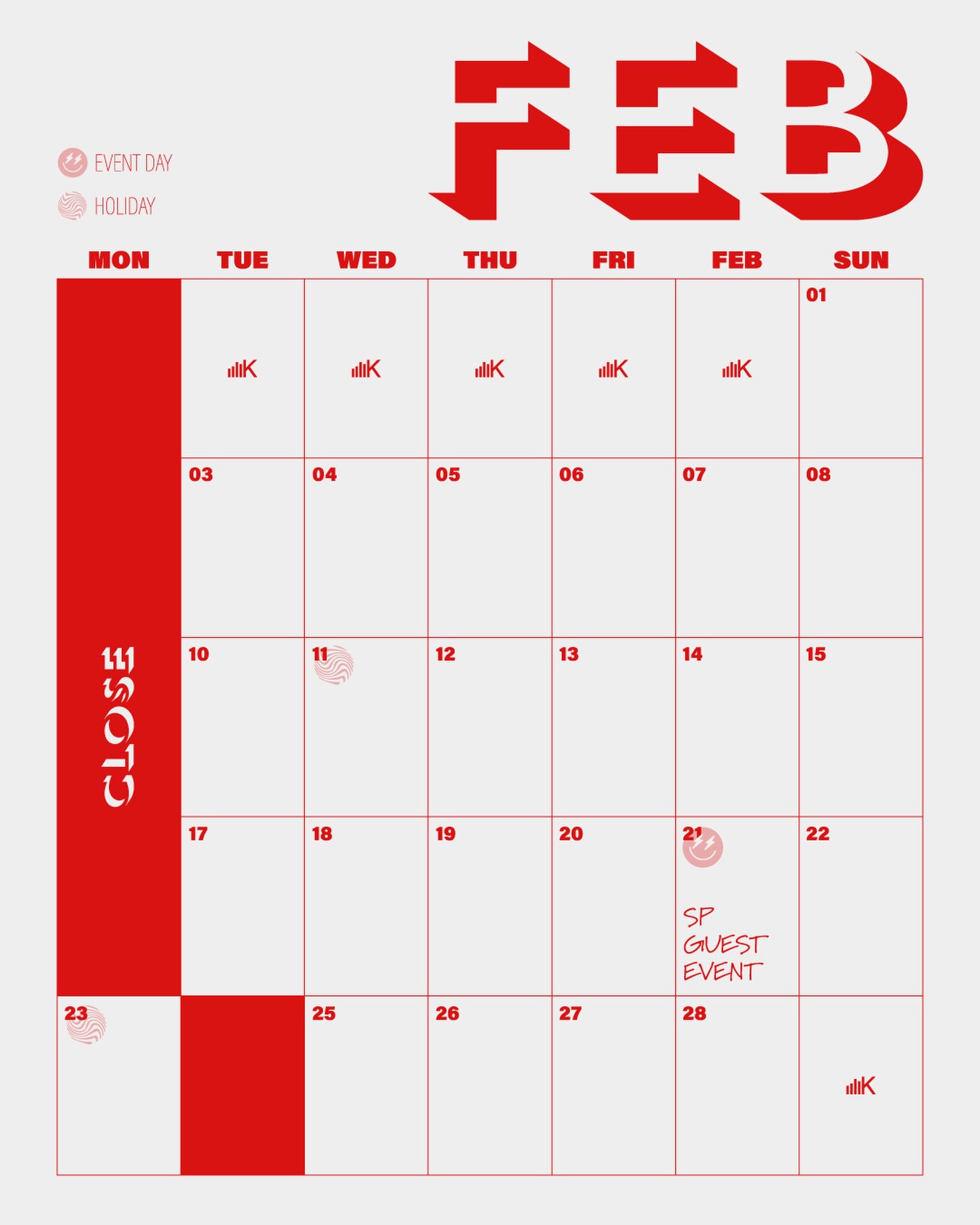 2026년 2월부터 매주 월요일을 정기 휴무일로 운영합니다.