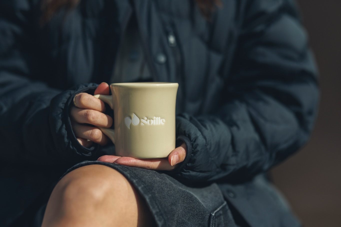 シンプルで洗練されたデザインの Soilleオリジナルマグカップ。