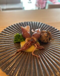 名前の由来は、「あまりにも美味しくて皿まで舐めたくなる」ことから「なめろう」と呼ばれるようになったと聞きます!。また、なめろうを火で炙った「さんが焼き」も人気の郷土料理で、どちらで提供しようか、試作段階です!近々、お披露目出来そうなので是非、食べてもらいたい一品です!