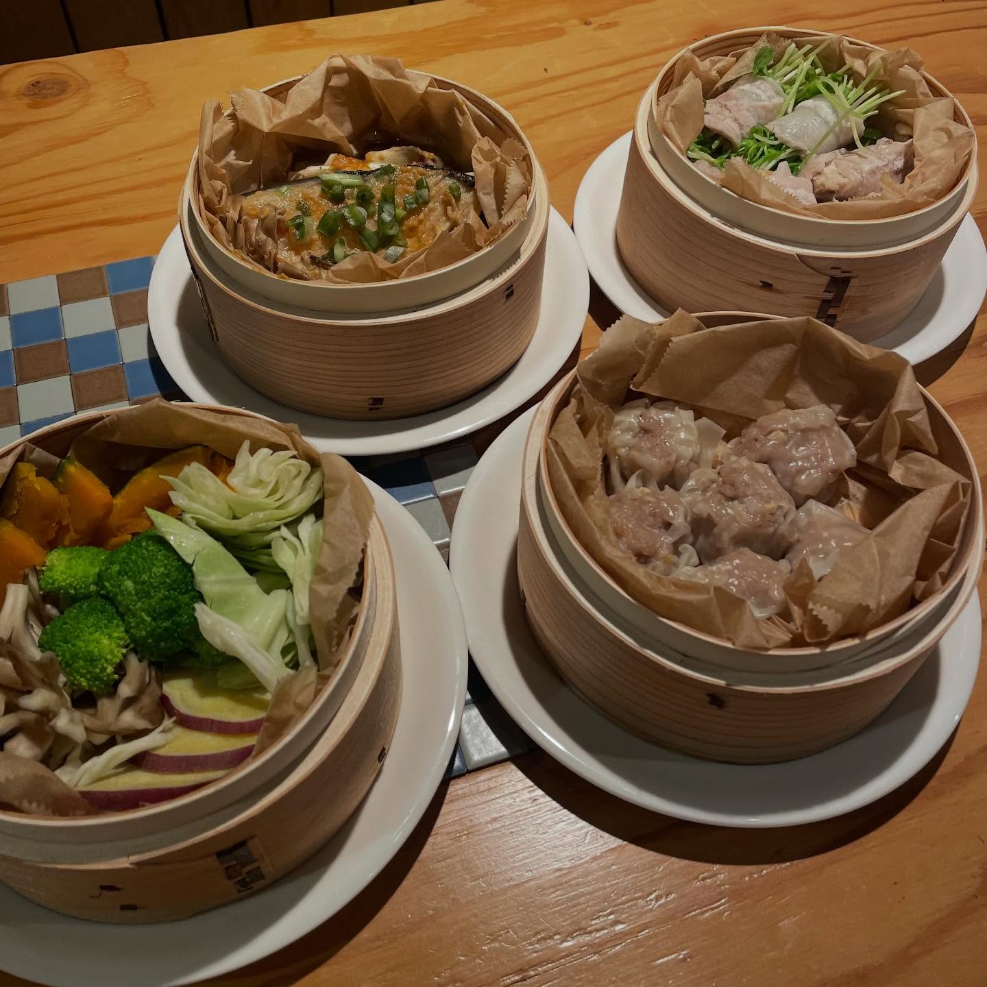 焼売、野菜蒸し、肉巻き野菜蒸し、西京焼き蒸し!