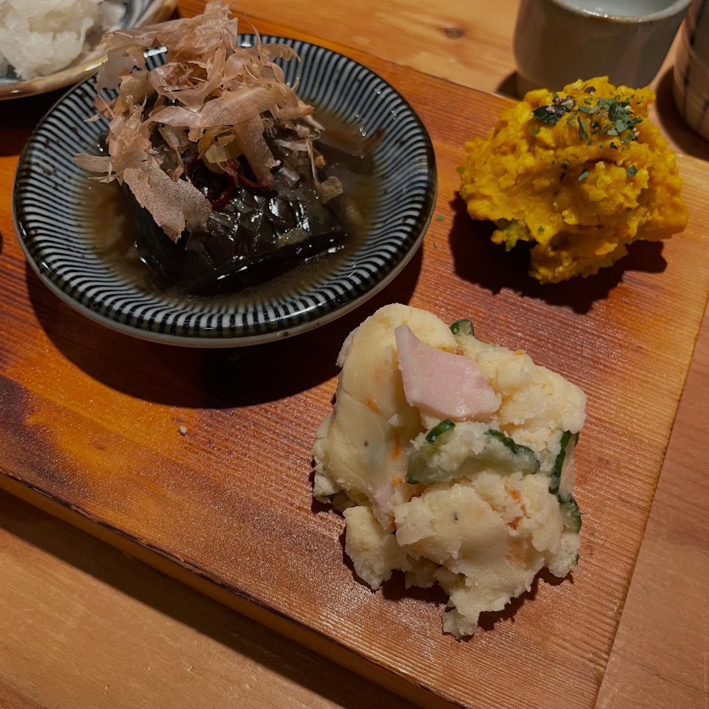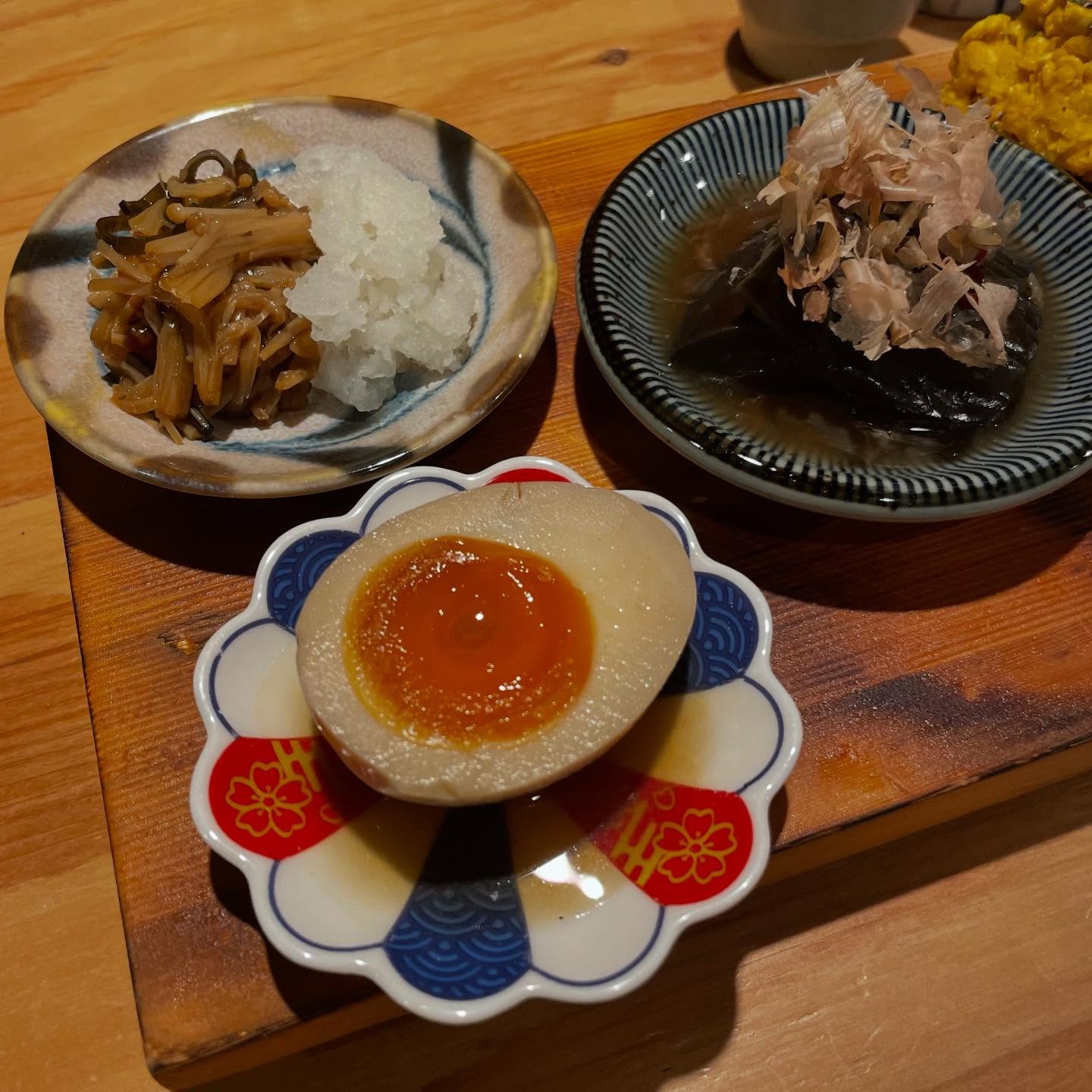 おろしなめ茸、味玉、ポテトサラダ!