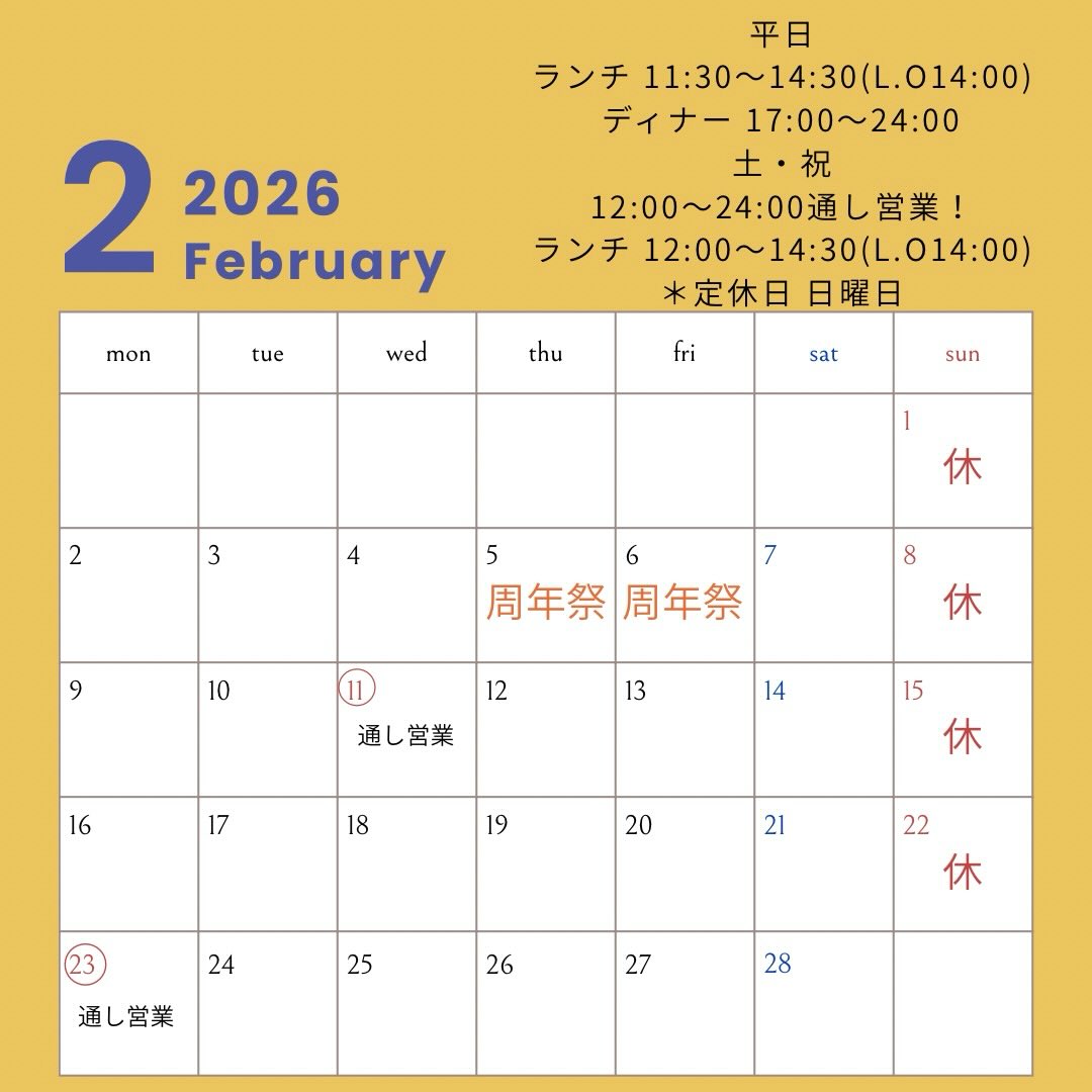 定休日  日曜日(祝日は営業の場合あり)