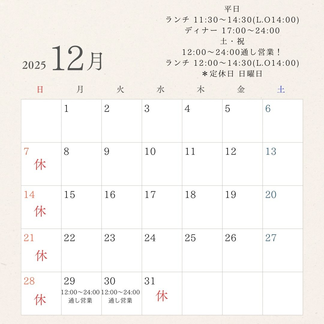 定休日  日曜日(祝日は営業の場合あり)