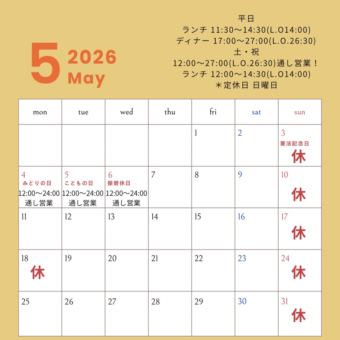 最新情報2026年4月28日˗ˏˋ5月営業スケジュールˎˊ˗