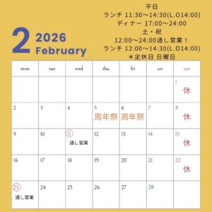 ˗ˏˋとか食堂の2月営業日ˎˊ˗